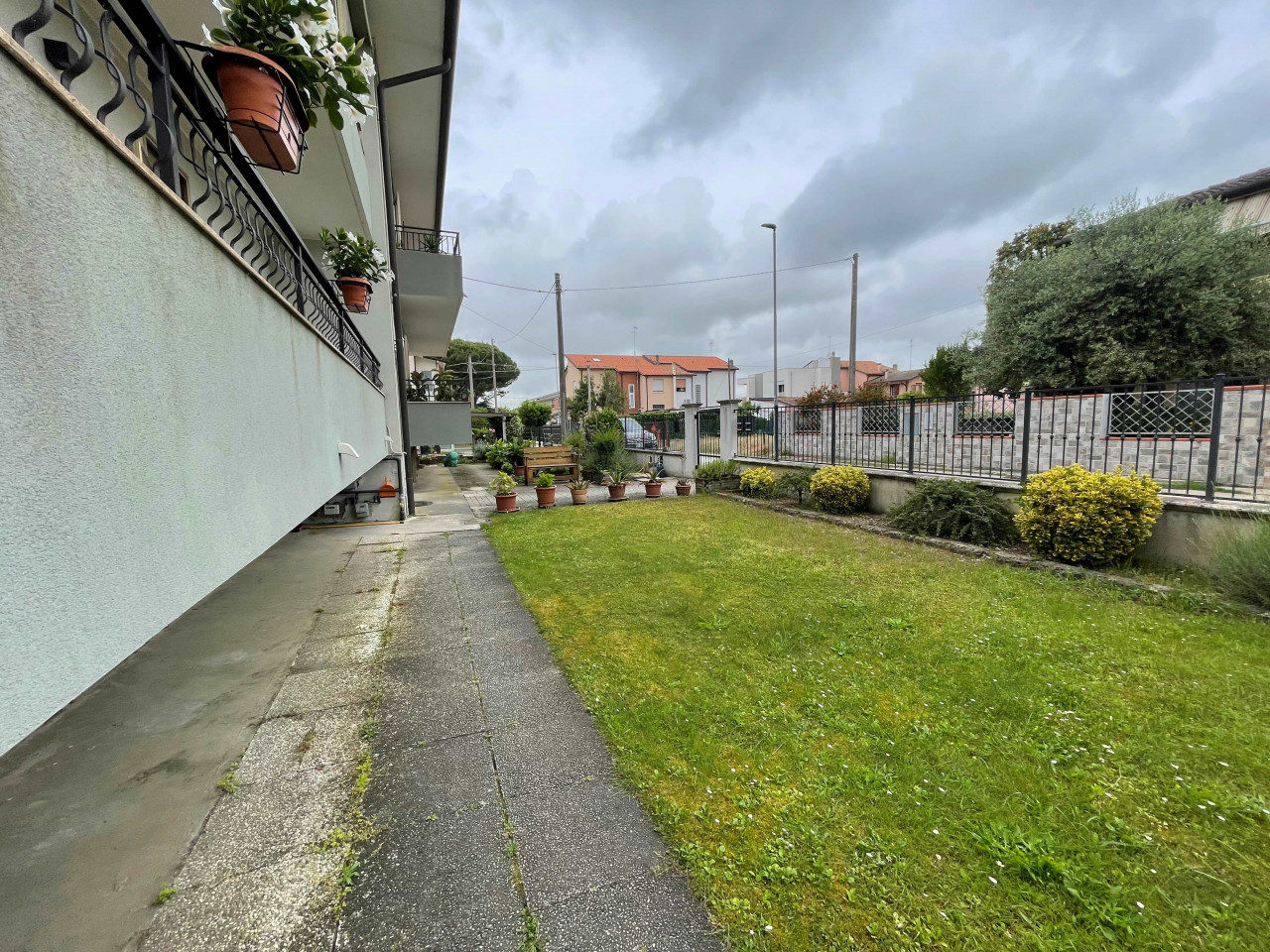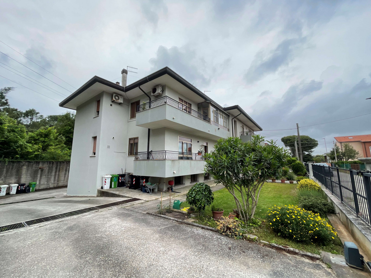 Spazioso appartamento non arredato, di mq 115 + 2 terrazzi + garage + cantina, ubicato al piano primo di una palazzina di sole 5 unità, con ottima posizione centrale di Donada ma su via interna quindi silenziosa, vicino a scuole e ai principali servizi. La palazzina è stata completamente ristrutturata esternamente nel 2018 (ovvero sono stati rifatti la recinzione, il colore esterno, il cancello carraio automatico, la porta d'ingresso), vi sono 2 ampi terrazzi (uno a nord e uno a sud), è dotato di garage e cantina esclusivi. La caldaia è stata sostituita nel 2018 ed è a condensazione. Il giardino è comune e per consuetudine si sono organizzati nella gestione autonoma per evitare anche le spese condominiali (infatti non c'è amministratore condominiale, unica spesa la luce e pulizia delle scale che è stata conteggiata forfettariamente in € 15 mensili circa). Attualmente è affittato vuoto con contratto 4+4 anni dal 2014, rende un canone mensile regolarmente pagato di € 410,00 con scadenza il 31/07/2026. Potrebbe essere valutato anche come investimento. Composto da: ingresso, cucina, soggiorno, corridoio, 3 camere da letto, 1 bagno, ripostiglio e 2 terrazzi.